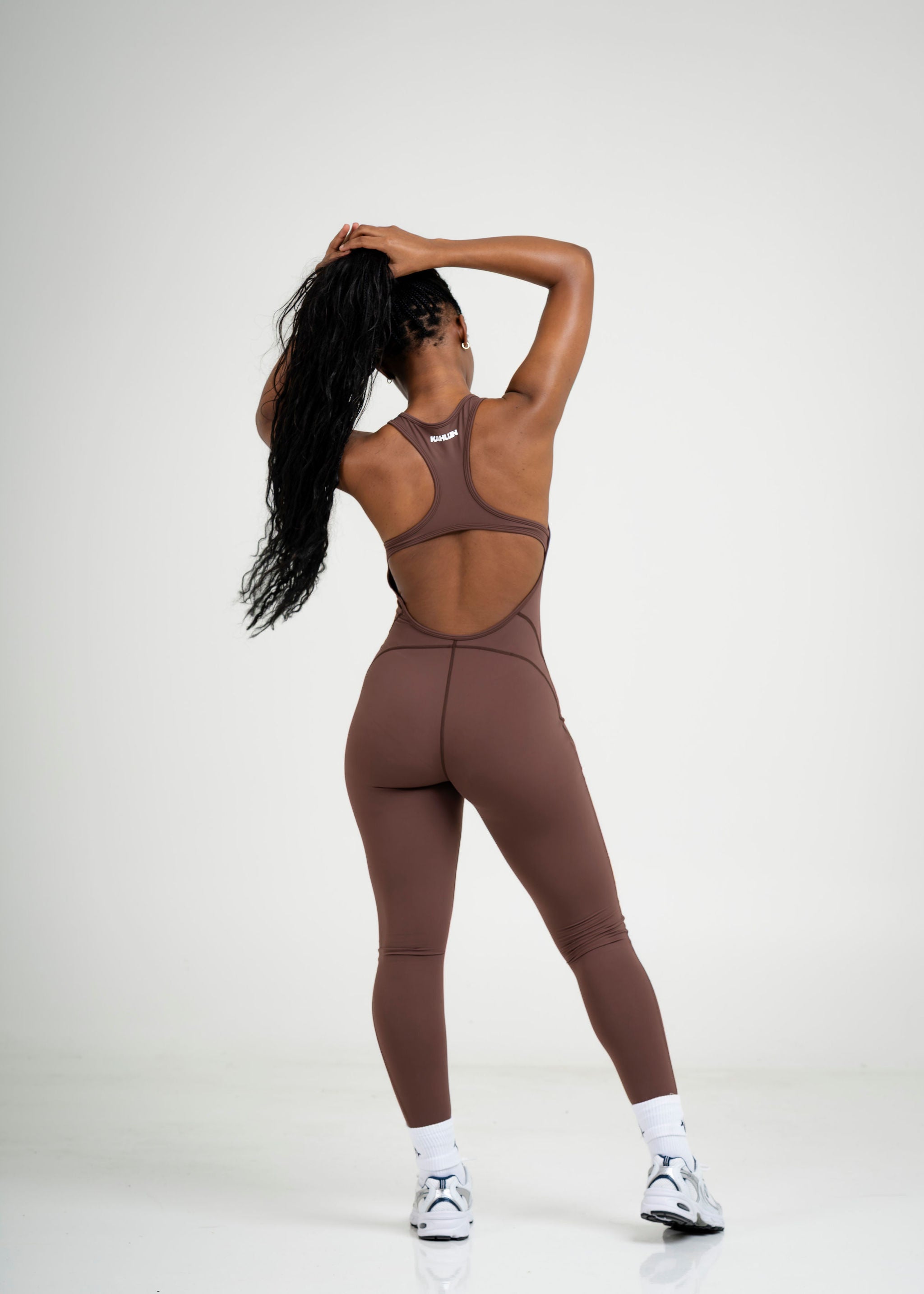 1. Effortless, sleek, and designed to move with you, the Terra Open-Back Jumpsuit combines bold style with functional comfort. The open-back detail adds a modern edge, while the fitted silhouette contours the body for a flattering, confident fit. Crafted from breathable, stretch fabric, it transitions seamlessly from high-energy workouts to stylish ath-leisure looks. Minimalist yet striking, this jumpsuit is made for those who move with purpose and style.