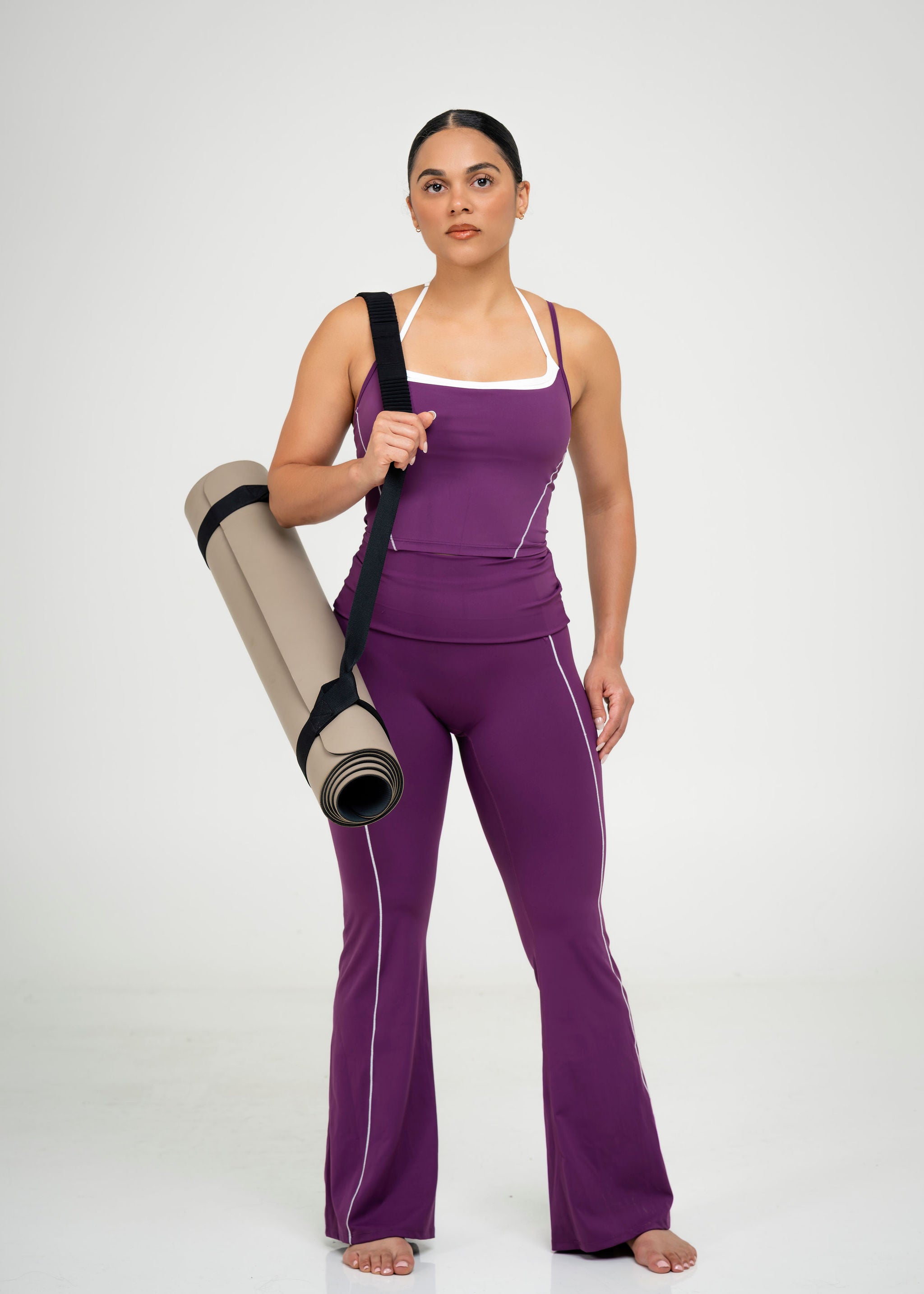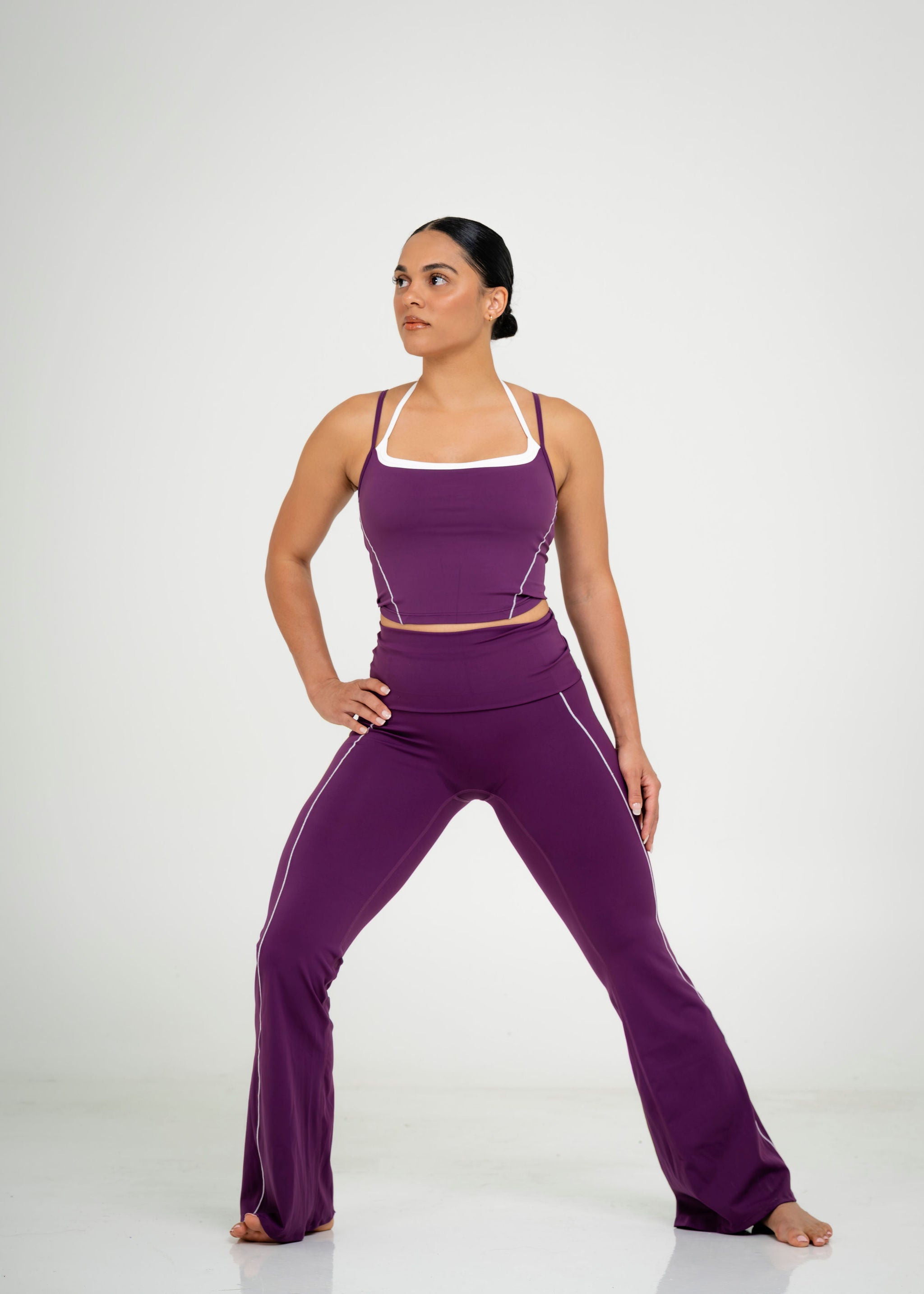 1. Soft to the touch and designed for ease, the Comfort Vibe flared pants offer a sleek, form-fitting silhouette that subtly flares at the hem for an elongated look. The fold-over waistband sits securely, smoothing and supporting without restriction. Crafted from buttery-soft stretch fabric, they feel weightless yet sculpting making them just as effortless for training as they are for everyday wear. A timeless piece that blends comfort, confidence, and style in one.