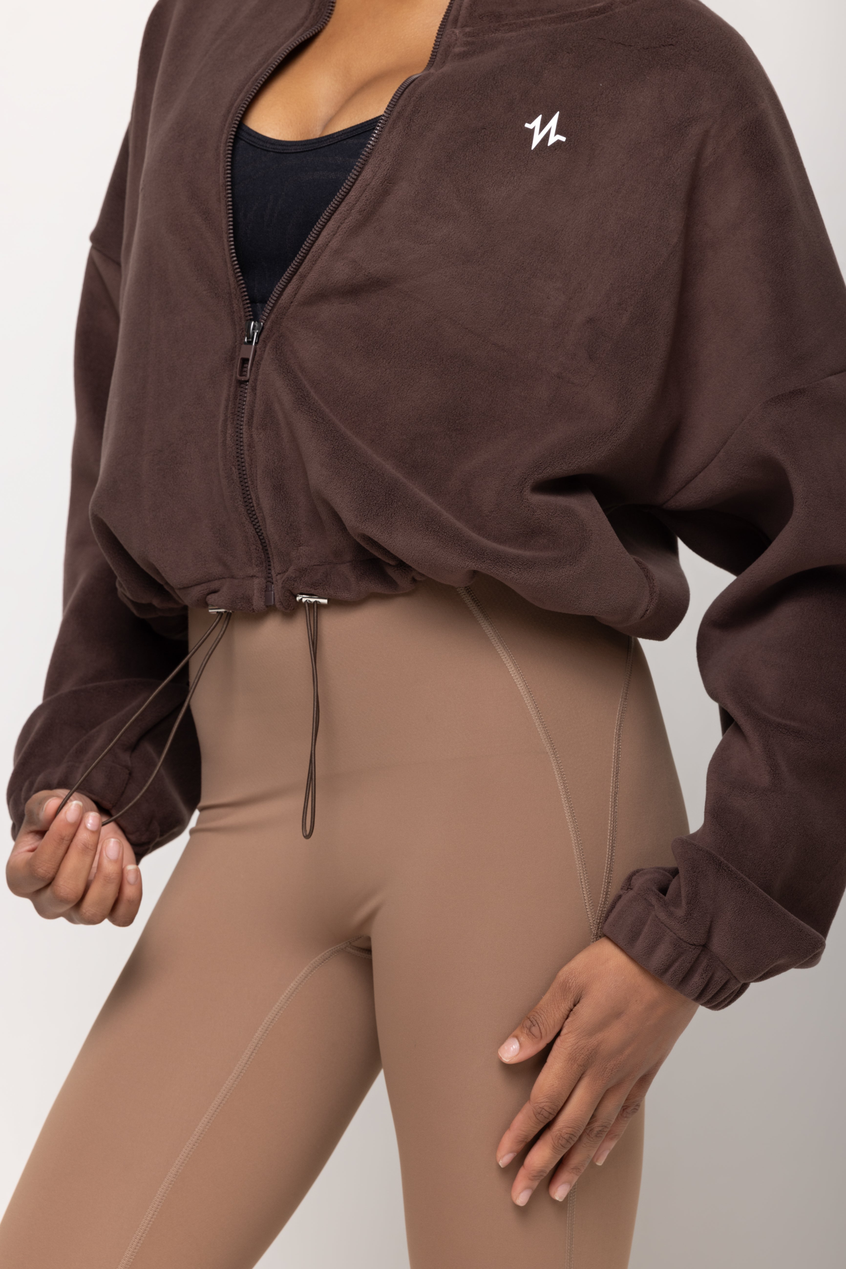 Give any outfit an instant style boost with the Prime Time Jacket. It’s an essential piece for every wardrobe, as it showcases a versatile brown color that layers well over any look. This jacket boasts a high neck, oversized long sleeves with drop shoulders and a convenient zipper-front closure. Oh, and the cropped hem comes with a drawstring that can be customized for a cinched look.