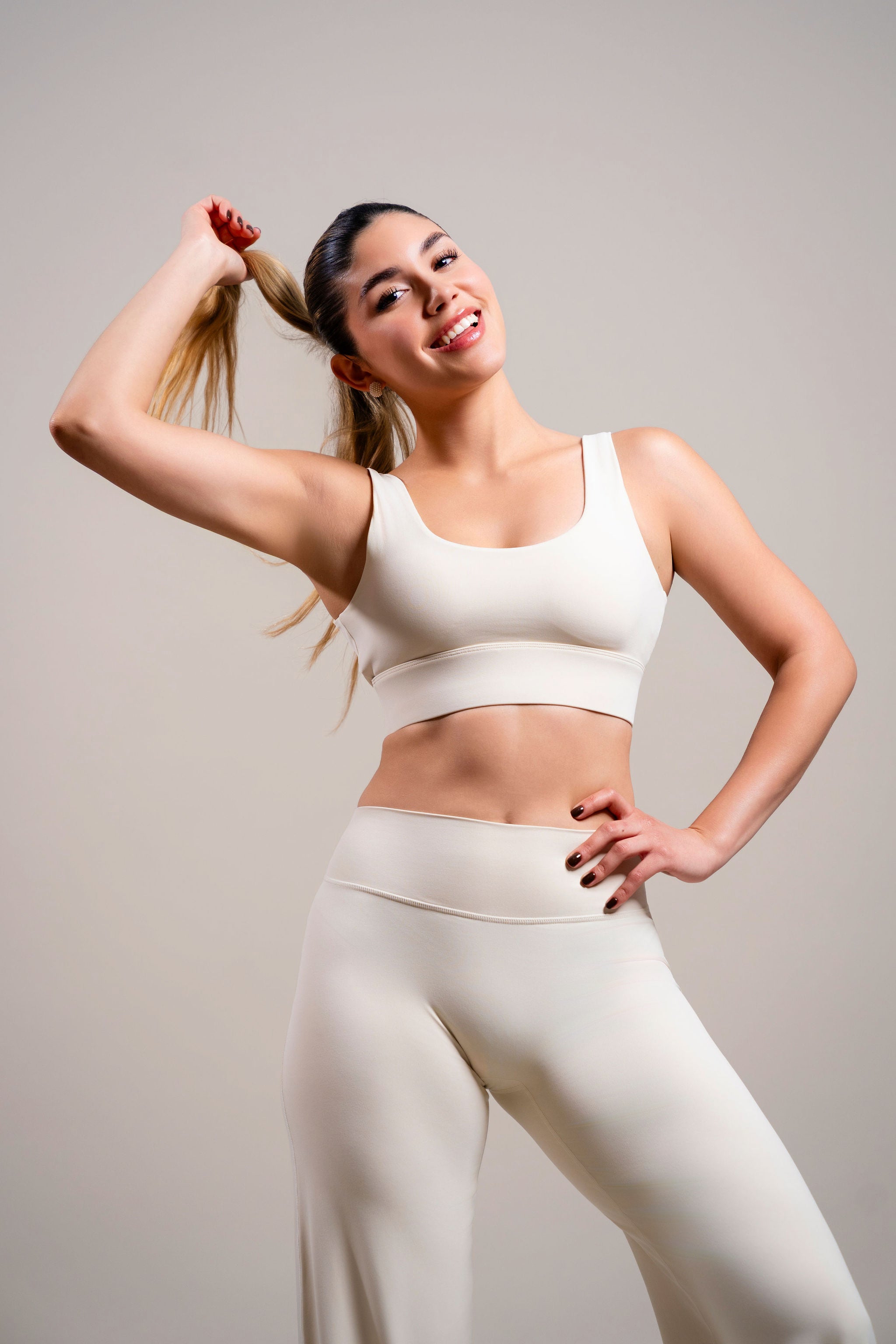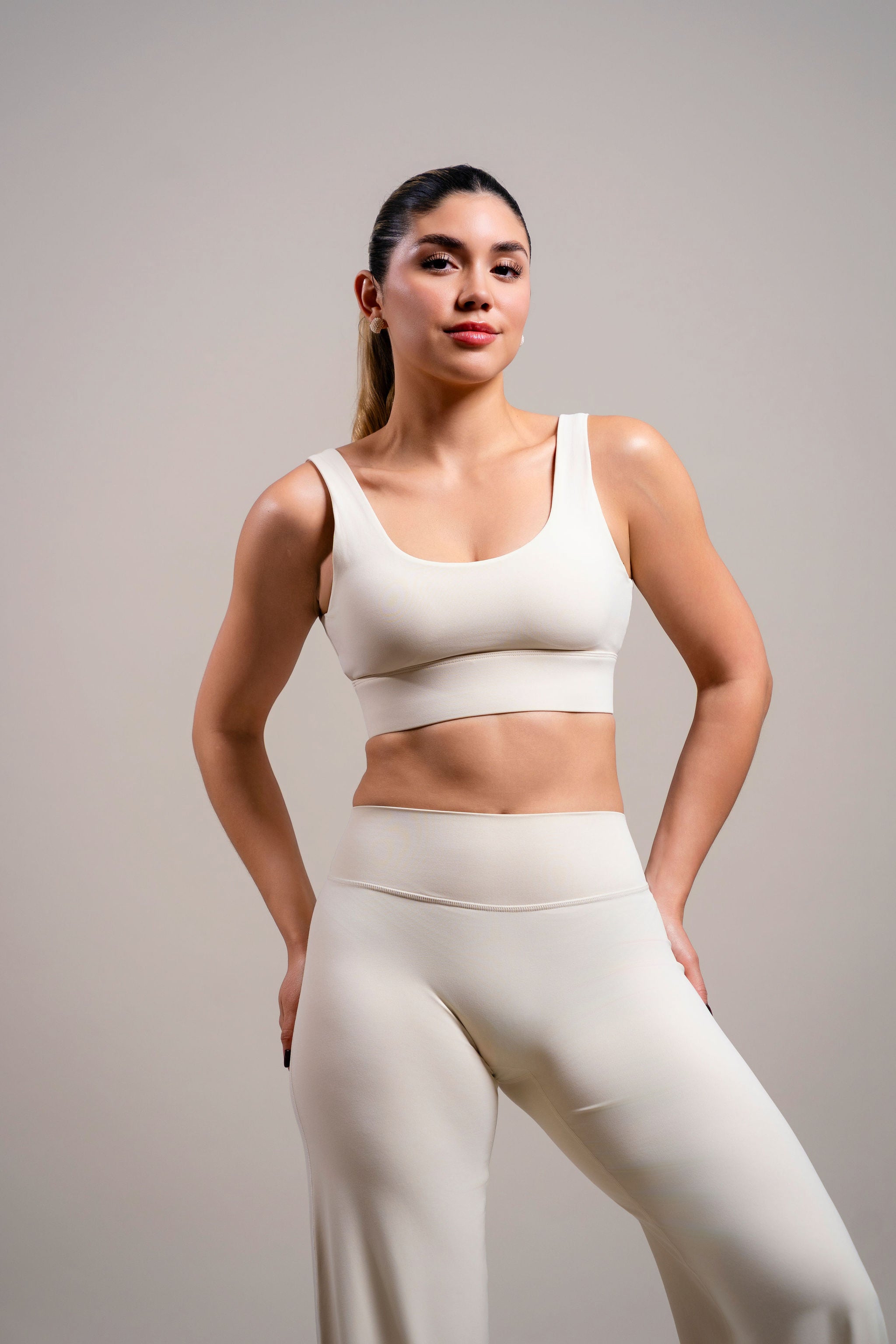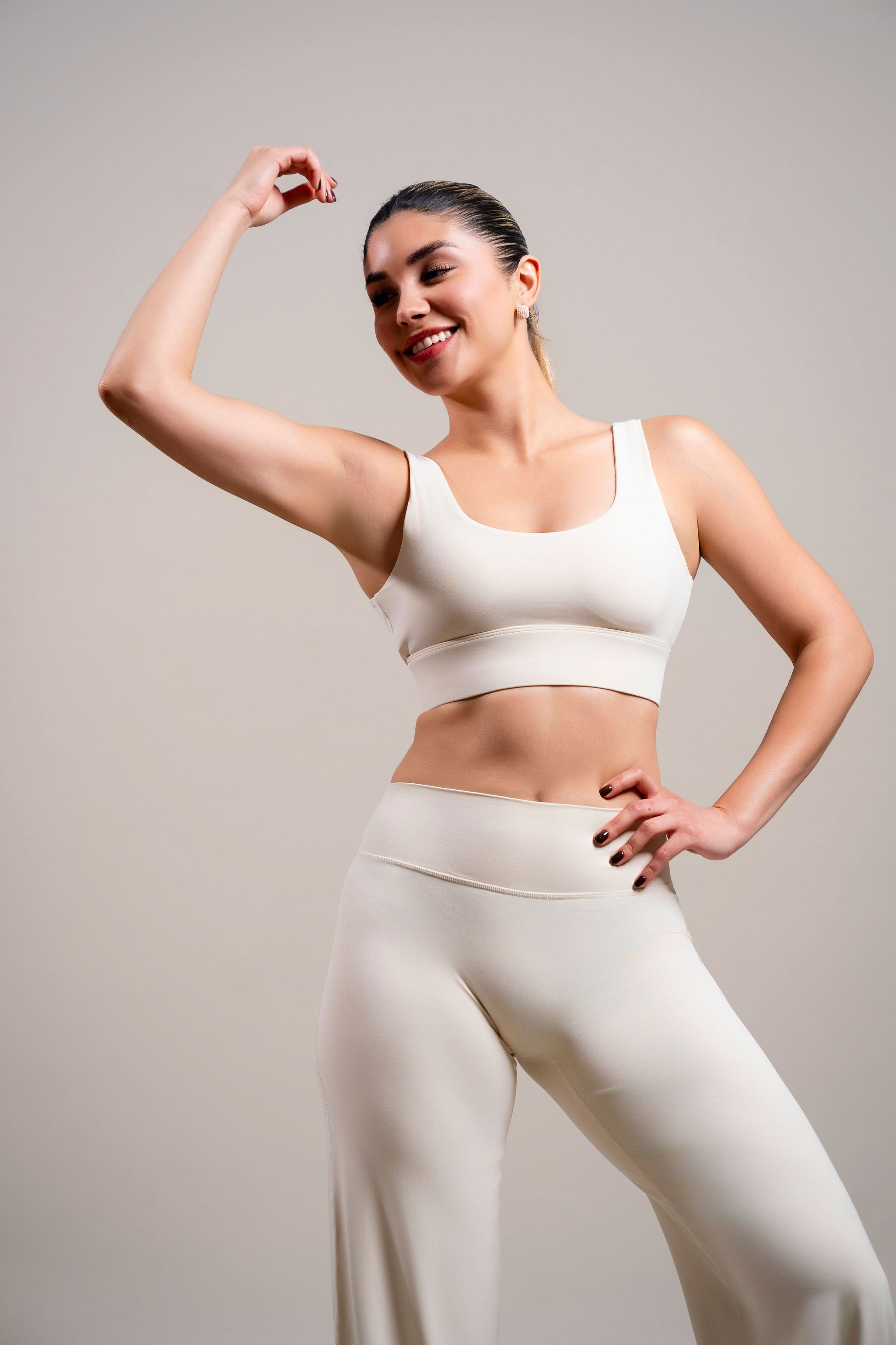 Crafted from smooth, supportive performance fabric, it offers breathable comfort and flexible support for Pilates, strength training, yoga, and elevated athleisure styling.